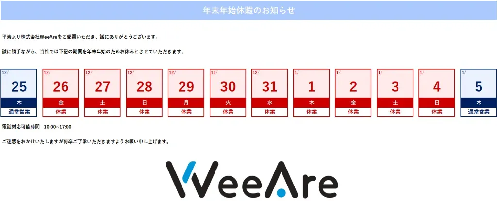 年末年始休暇のお知らせ